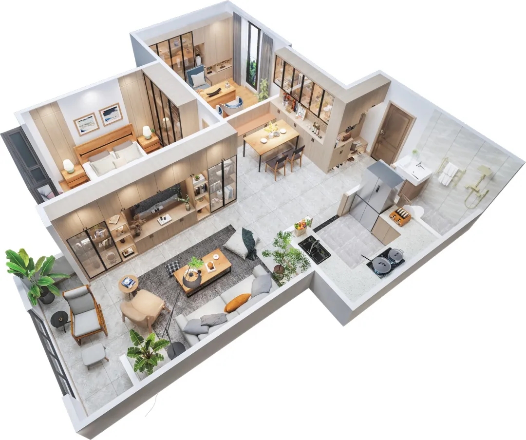 2、次卧打造(zao)爲(wei)充滿書香墨韻的(de)書房,仿佛寫意派的(de)山(shān)水畫;