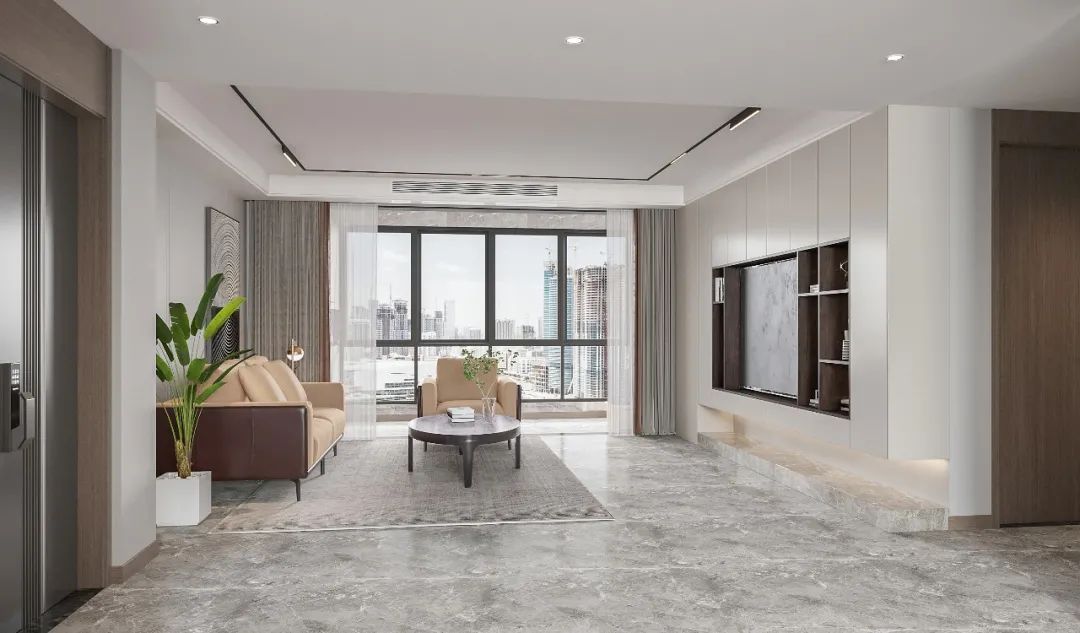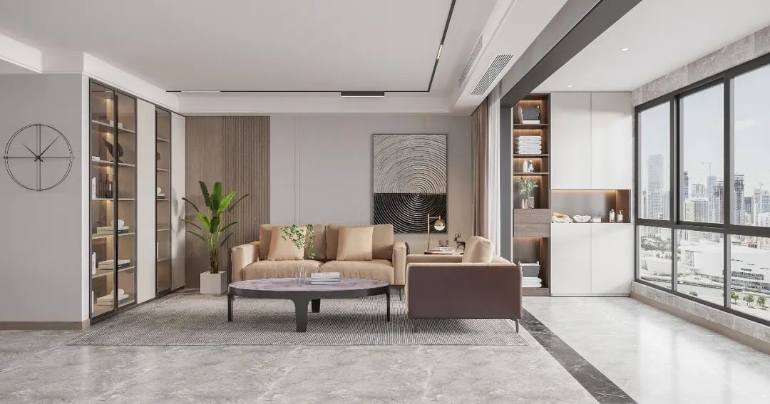 整牆定製(zhi)電(dian)視櫃“內(nei)有(yǒu)乾坤”,容量豐(feng)富(fu),極簡設(shè)計(ji),線(xiàn)條幹練流暢,無把手櫃們(men)視覺統一(yi),櫃體(ti)更顯輕盈;底部(bu)留空設(shè)計(ji)打消了(le)整牆電(dian)視櫃帶來的(de)壓迫沉悶感,內(nei)置燈帶讓客廳更顯靈(ling)動(dòng)高(gao)級。